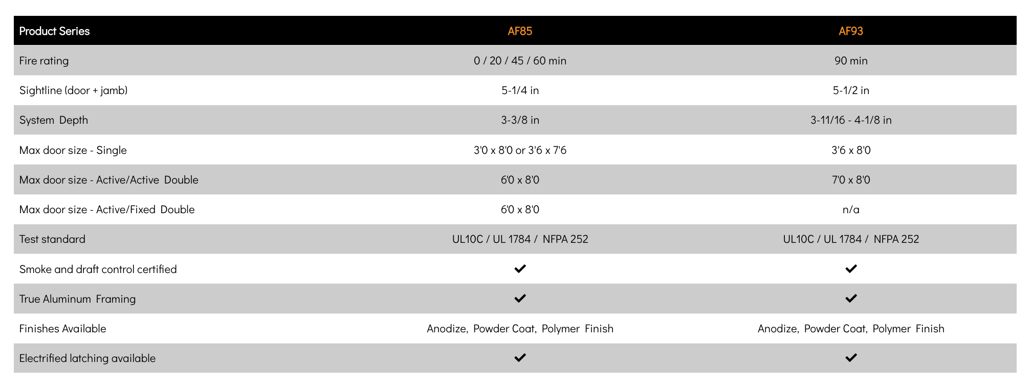 Constructed from thermally broken narrow aluminum extrusions and filled with a proprietary fire blocking material, Alum Windows’s storefront door systems are available in 20, 45, 60 and 90 minute ratings for interior and exterior installations.